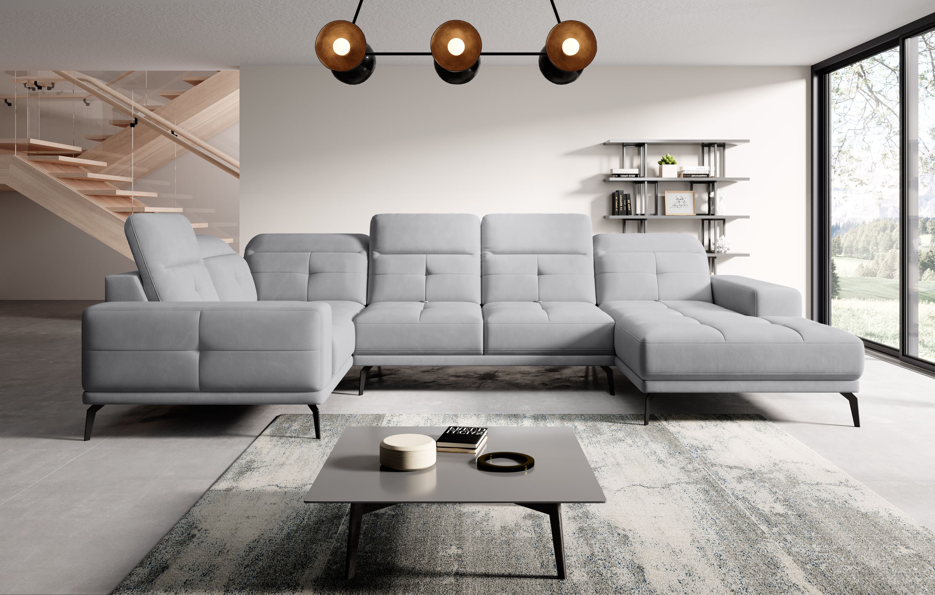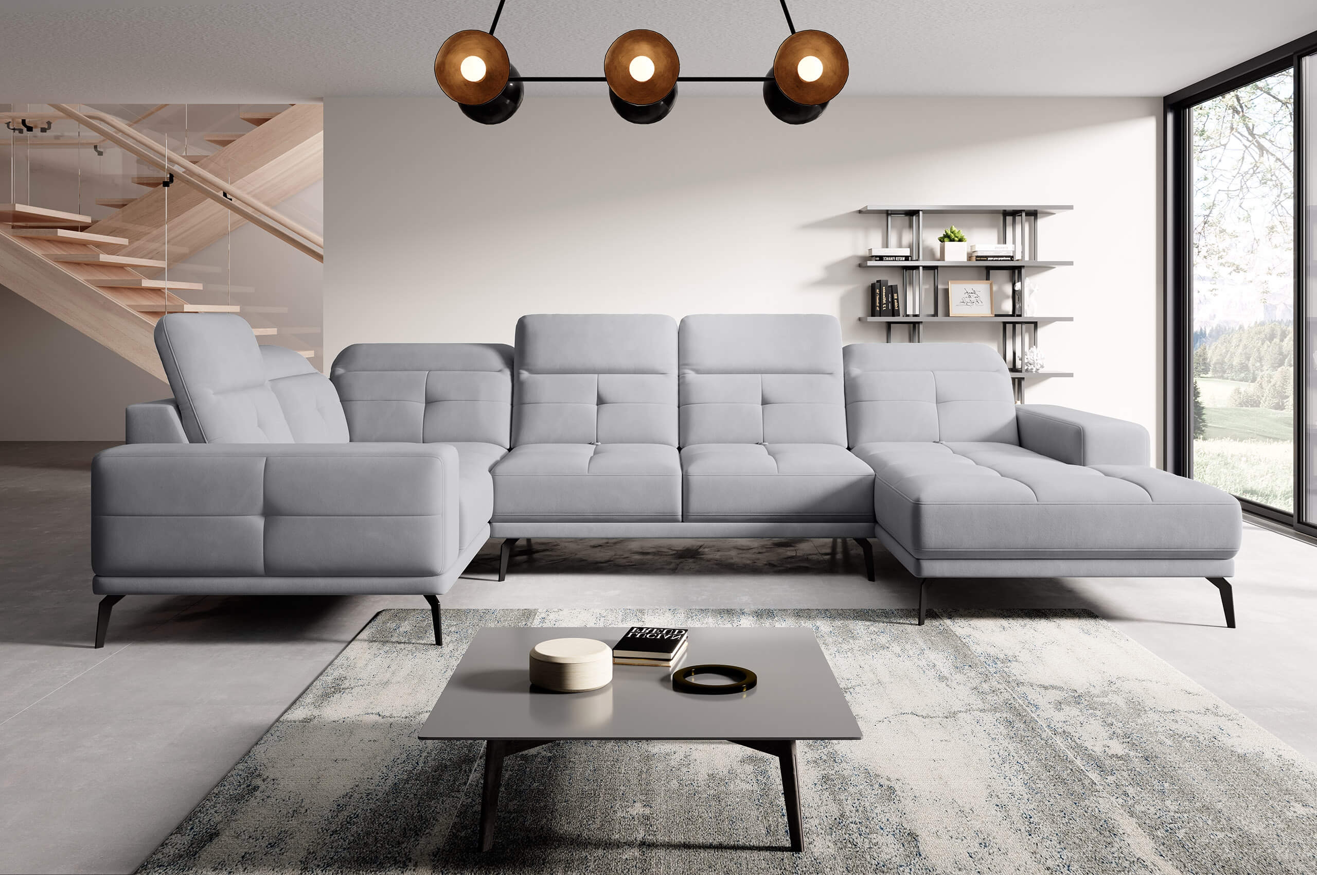 Die Wohnlandschaft Nevido vereint modernen Stil und hohen Komfort in einem. Bezogen mit hochwertigem Veloursstoff, verleiht das Sofa jedem Wohnraum eine elegante Note. Der Bezug ist in verschiedenen Farben erhältlich, sodass Sie die Wohnlandschaft individuell an Ihre Einrichtung anpassen können. Zudem können Sie entscheiden, ob die Ottomane links oder rechts angebracht wird – ideal für maximale Flexibilität.