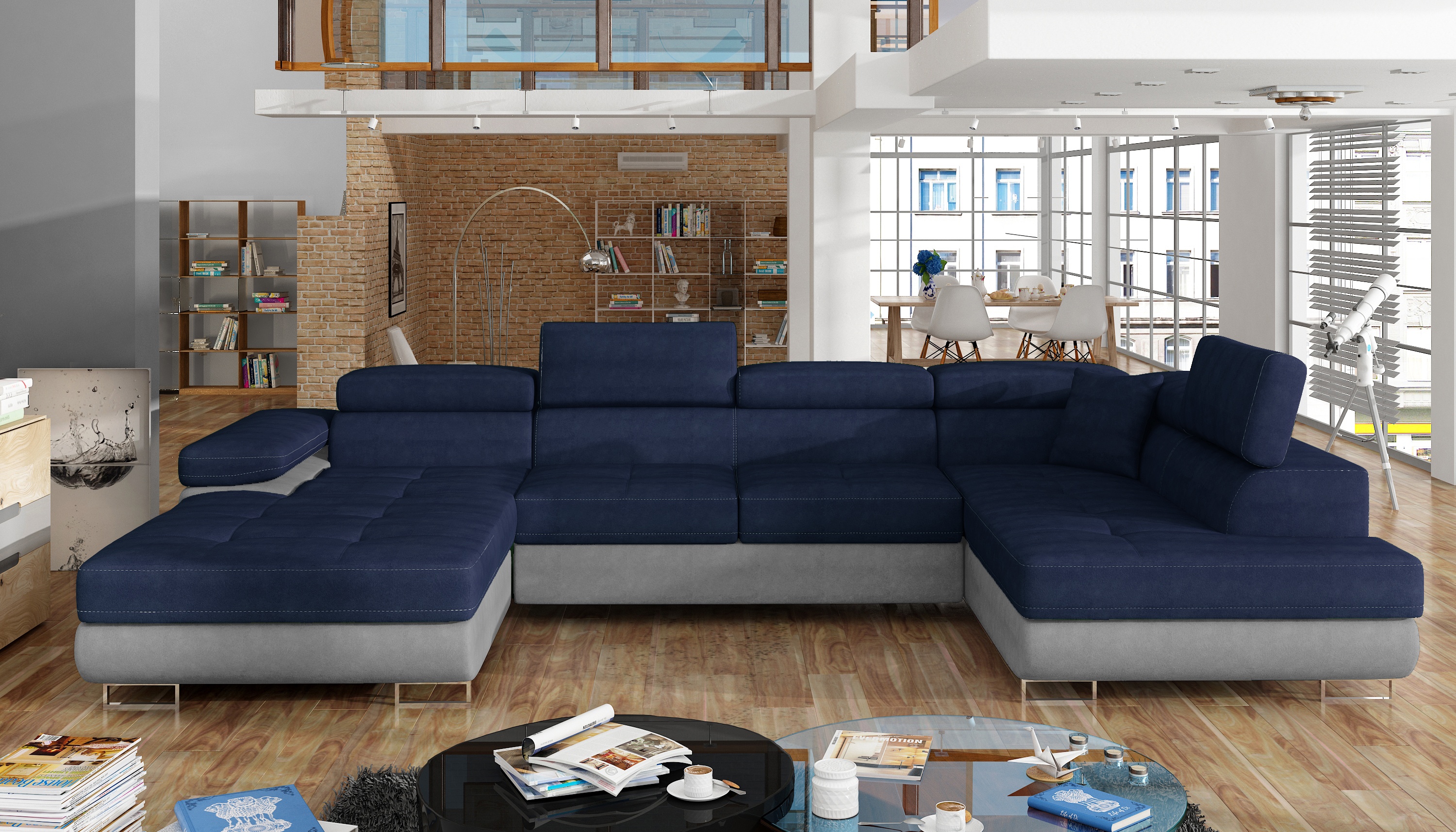 Tauchen Sie ein in den modernen Komfort und zeitlosen Stil mit der Wohnlandschaft Rico. Diese elegante Möbelstück ist nicht nur ein ästhetisches Highlight in Ihrem Wohnzimmer, sondern bietet auch herausragende Funktionalität. Die Wohnlandschaft Rico überzeugt mit einer praktischen Bettfunktion und einem großzügigen Bettkasten, sodass sie im Handumdrehen zu einer gemütlichen Schlafgelegenheit für Übernachtungsgäste wird. Die großzügige Liegefläche und die hochwertige Wellenunterfederung sorgen dabei für erholsamen Schlafkomfort. Das moderne Design wird durch die stilvollen Metallfüße unterstrichen, die nicht nur für Stabilität, sondern auch für eine elegante Optik sorgen. Zusätzlich ermöglicht die Kopfteilverstellung individuellen Komfort und Flexibilität beim Entspannen. Entdecken Sie mit der Wohnlandschaft Rico die perfekte Kombination aus Stil, Funktionalität und Komfort für Ihr Zuhause und verwandeln Sie Ihr Wohnzimmer in eine wahre Wohlfühloase.