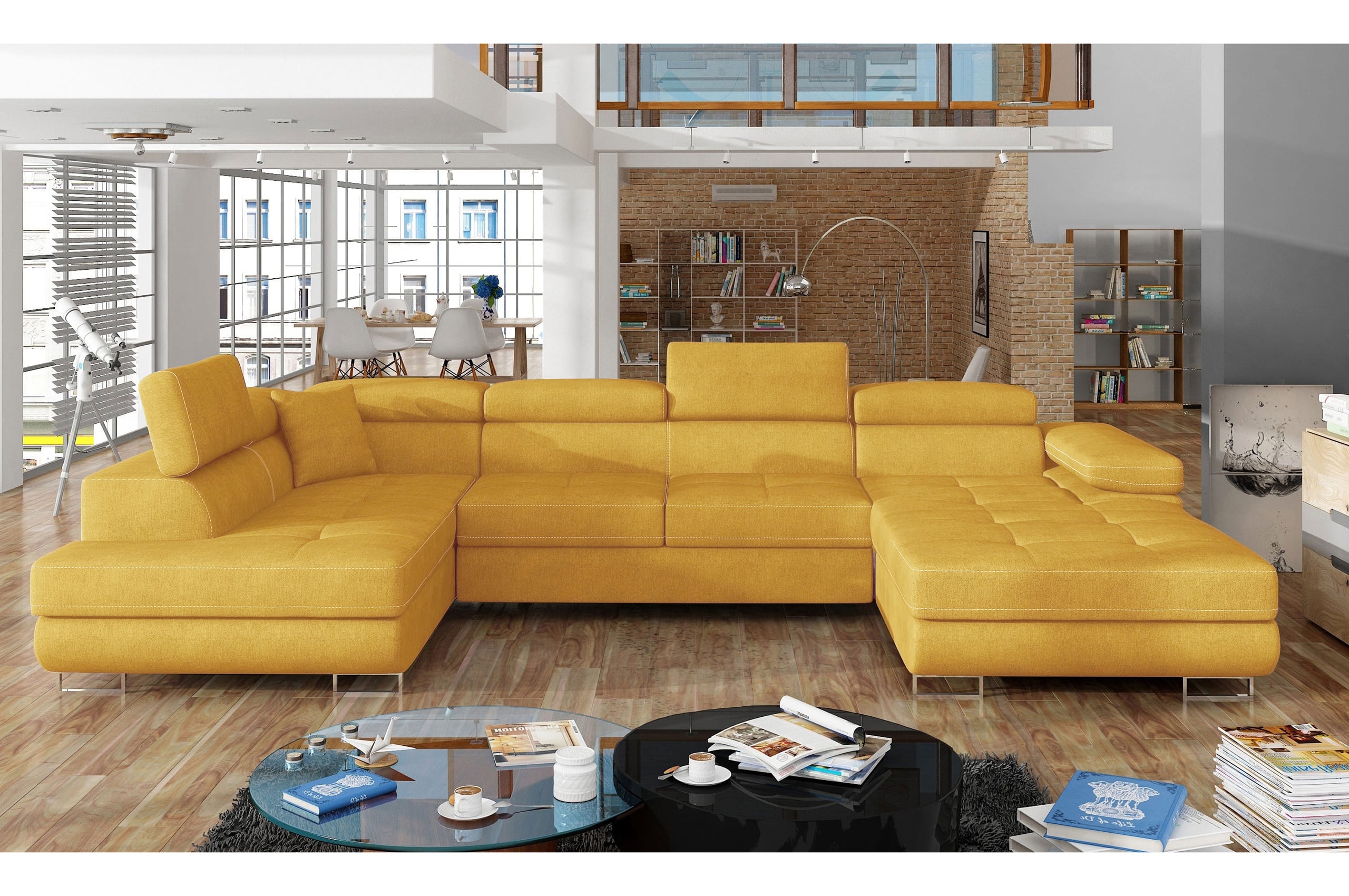 Tauchen Sie ein in den modernen Komfort und zeitlosen Stil mit der Wohnlandschaft Rico. Diese elegante Möbelstück ist nicht nur ein ästhetisches Highlight in Ihrem Wohnzimmer, sondern bietet auch herausragende Funktionalität. Die Wohnlandschaft Rico überzeugt mit einer praktischen Bettfunktion und einem großzügigen Bettkasten, sodass sie im Handumdrehen zu einer gemütlichen Schlafgelegenheit für Übernachtungsgäste wird. Die großzügige Liegefläche und die hochwertige Wellenunterfederung sorgen dabei für erholsamen Schlafkomfort. Das moderne Design wird durch die stilvollen Metallfüße unterstrichen, die nicht nur für Stabilität, sondern auch für eine elegante Optik sorgen. Zusätzlich ermöglicht die Kopfteilverstellung individuellen Komfort und Flexibilität beim Entspannen. Entdecken Sie mit der Wohnlandschaft Rico die perfekte Kombination aus Stil, Funktionalität und Komfort für Ihr Zuhause und verwandeln Sie Ihr Wohnzimmer in eine wahre Wohlfühloase.