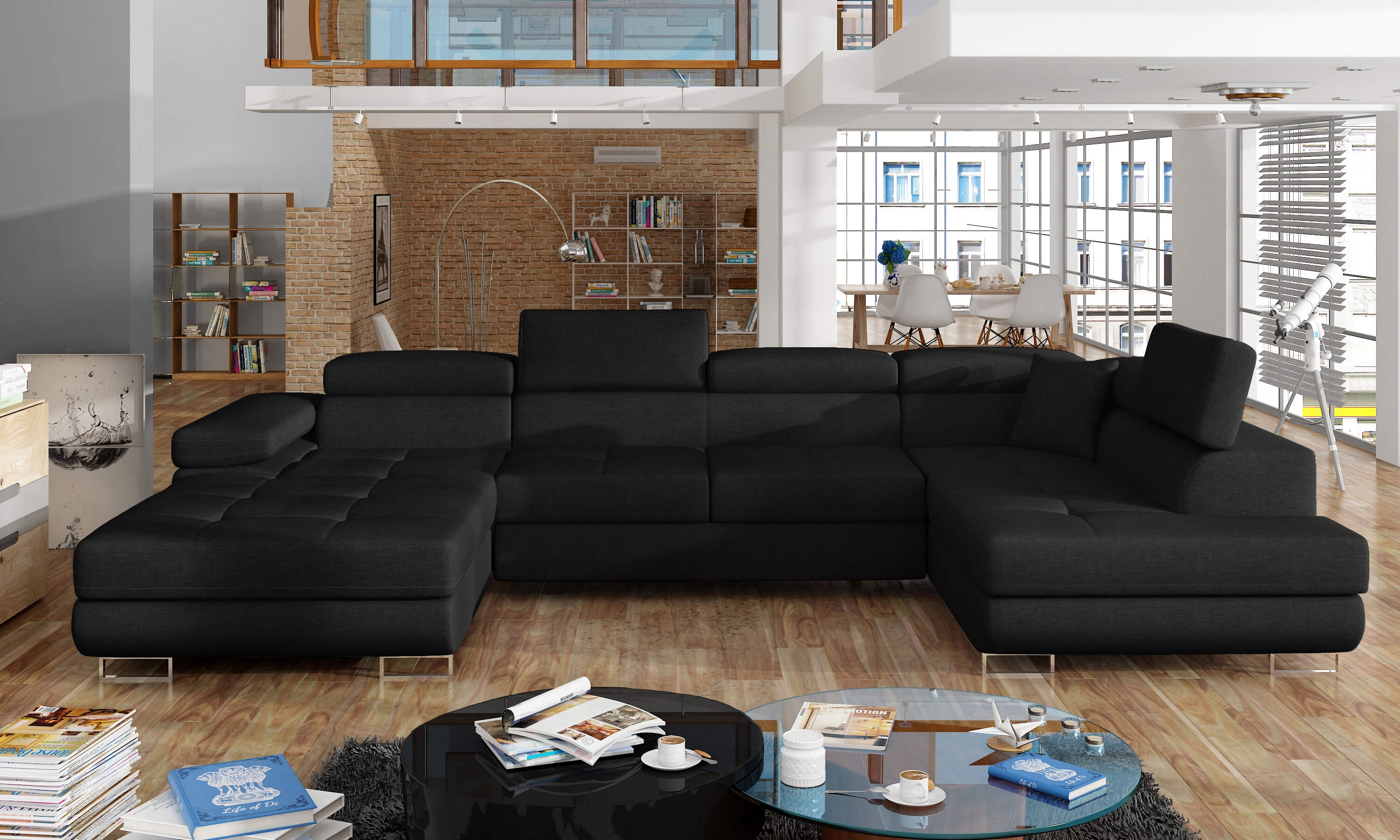 Tauchen Sie ein in den modernen Komfort und zeitlosen Stil mit der Wohnlandschaft Rico. Diese elegante Möbelstück ist nicht nur ein ästhetisches Highlight in Ihrem Wohnzimmer, sondern bietet auch herausragende Funktionalität. Die Wohnlandschaft Rico überzeugt mit einer praktischen Bettfunktion und einem großzügigen Bettkasten, sodass sie im Handumdrehen zu einer gemütlichen Schlafgelegenheit für Übernachtungsgäste wird. Die großzügige Liegefläche und die hochwertige Wellenunterfederung sorgen dabei für erholsamen Schlafkomfort. Das moderne Design wird durch die stilvollen Metallfüße unterstrichen, die nicht nur für Stabilität, sondern auch für eine elegante Optik sorgen. Zusätzlich ermöglicht die Kopfteilverstellung individuellen Komfort und Flexibilität beim Entspannen. Entdecken Sie mit der Wohnlandschaft Rico die perfekte Kombination aus Stil, Funktionalität und Komfort für Ihr Zuhause und verwandeln Sie Ihr Wohnzimmer in eine wahre Wohlfühloase.